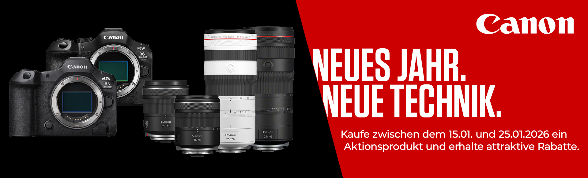 Canon EOS R6 Mark II GehäuseDie Vollformatkamera EOS R6 Mark II setzt neue Maßstäbe mit ihrer einzigartigen Mischung aus klassenbester Leistung, atemberaubender Geschwindigkeit, Stabilität und professionellen Funktionen für Filmproduktionen. Leben Sie Ihre Fähigkeiten voll aus und gehen Sie dabei keine Kompromisse ein - egal, was und wie Sie aufnehmen.Die EOS R6 Mark II mit 24,2 Megapixeln nimmt Reihenaufnahmen bis 40 B/s, 4K/60p Video mit Oversampling oder 6K RAW-Video auf einen externen Recorder auf.Canon EOS R6 Mark II Highlights:24MP mit Standard-ISO bis zu 102.400 für herausragende Bildqualität in allen LichtsituationenIBIS mit bis zu 8 Stufen Kompensationextrem schnell mit bis zu 40 Bildern pro Sekunde bei voller AF/AE NachführungDeep Learning AF jetzt auch mit Erkennung von Pferden, Flugzeugen und ZügenVideo in professioneller Qualität mit 4K60p Oversampled ohne Crop und 6K60p RAW bei externer Aufzeichnungbis zu 6 Stunden Video-AufnahmezeitKI-programmierter AF, der Motive überall im Bild erfasstDer Dual Pixel CMOS AF II erkennt und verfolgt Motive auf intelligente Weise und sorgt dafür, dass sie auch dann scharf abgebildet werden, wenn sie sich bewegen. Die EOS R6 Mark II erkennt eine Vielzahl von Motiven, darunter Menschen, Fahrzeuge und Tiere, und verfügt jetzt über einen Automatikmodus, der den Motivtyp automatisch auswählt.Der Dual Pixel CMOS AF II fokussiert noch schneller und präziser und kann dank der KI-Programmierung noch mehr Motive erkennen. Unsere branchenführende IBIS-Technologie (kamerainterner Bildstabilisator) ermöglicht in Verbindung mit einem optischen Bildstabilisator im Objektiv handgeführte Aufnahmen mit sehr langen Belichtungszeiten und ruhige Videoaufnahmen, die aussehen, als wären sie mit einem Gimbal aufgenommen worden.Flüchtige Momente rechtzeitig festhaltenJeder noch so kurze Moment wird mit bis zu 40 B/s festgehalten - mit dem elektronischen Verschluss der Kamera und gleichzeitiger AE- und AF-Nachführung. Der mechanische Verschluss ermöglicht Reihenaufnahmen mit bis zu 12 B/s. Außerdem bietet die Kamera den RAW-Burst-Modus mit 30 B/s und der Pre-Shooting Funktion, mit der die Kamera bereits Aufnahmen macht, bevor der Auslöser ganz gedrückt ist. Optischer IS trifft IBISDie EOS R6 Mark II kombiniert den optischem IS eines Objektivs mit dem kamerainternem IS, was eine Stabilisierung für bis zu 8 Belichtungsstufen ergibt. Bei Videoaufnahmen kommt zudem Movie Digital IS zum Einsatz und sorgt für Aufnahmen, die aussehen, als wären sie mit einem Dolly oder Gimbal gedreht worden. Die idealen AuflösungenDer neu entwickelte 24,2-Megapixel Sensor bietet ein ideales Gleichgewicht zwischen Auflösung, Geschwindigkeit und Low-Light-Eigenschaften. Professionelle Videoaufnahmen auf KnopfdruckZur Aufnahme der 4K 60p Videos mit Oversampling nutzt die Kamera die gesamte Sensorbreite. 6K ProRes RAW lassen sich ebenfalls aufnehmen und auf einem externen Atomos Ninja V+ Recorder speichern. Full HD-Videos mit bis zu 180p liefern fantastische Zeitlupeneffekte, während HDR PQ und HDR Movie zusätzliche Details in Schatten und Lichtern offenbaren. Die kamerainterne Korrektur von Fokus-Breathing Effekten sorgt für eine professionelle Fokussierung. Als würde die Nacht zum TagDie Kamera kann bei einer Dunkelheit von bis zu -6,5 LW fokussieren - weniger als das Licht bei Halbmond. Eine maximale Empfindlichkeit von ISO 102.400 (erweiterbar auf ISO 204.800) und unser branchenführender 8-Stufen-IS sind die perfekten Werkzeuge, um jederzeit die natürliche Atmosphäre bei Umgebungslicht einzufangen. Auf das Design kommt es anWenn wir eine neue EOS entwickeln, nutzen wir unsere jahrzehntelange Erfahrung, um sicherzustellen, dass sich die Kamera wie eine Erweiterung des kreativen Geistes anfühlt. Das haben wir mit der EOS R6 Mark II mit diesen Features erreicht: ein elektronischer Sucher (EVF) mit 3,6 Mio. Bildpunkten und einer Bildwiederholungsrate bis 120 B/s, ergonomisch angeordnete, konfigurierbare Bedienelemente, zwei UHS-II-SD-Karten zur Sicherung oder Organisation der Aufnahmen, und ein Witterungsschutz, der einen bei jedem Wetter weiter arbeiten lässt. Immer in VerbindungFotos und Videos mit dem Online-Publikum teilen und die EOS R6 Mark II kabellos vom Smartphone oder Computer aus steuern - das optimierte WLAN mit Bluetooth macht es möglich. Für die ultimative Bildqualität sorgt die RAW-Bildverarbeitung in der image.canon Cloud.Lieferumfang:Canon EOS R6 Mark II GehäuseKamera-Gehäusedeckel R-F-5Zubehörschuh-Abdeckung ER-SC2Tragegurt ER-EOS R6 Mark IIAkkuladegerät LC-E6EAkku LP-E6NHAbdeckung für AkkufachAC-Netzkabel (EU/SK)Anleitungen (EU)
